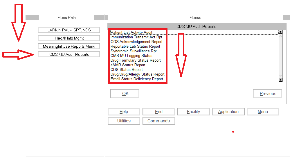 HEALTH INFO Mgmt > MEANINGFUL USE REPORT MENU > CMS Audit Reports