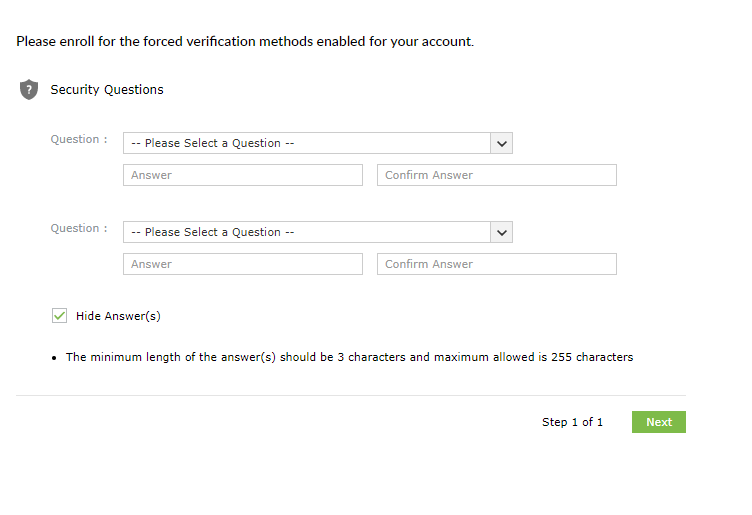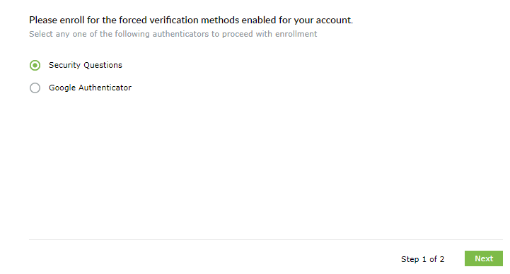 a. If Security question is set, then it will requires you to setup 2 personal questions and